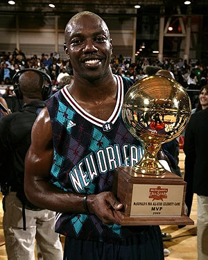 In the celebrity game, Team New Orleans defeated Team Hornets 51-50, and the game was won on the very last possession. Master P made the go-ahead free throws with 19 seconds remaining, and then stopped the Hornets on their last possession to preserve their 1-point lead. T.O. didn't show up until halfway through the first half, but still managed to score 18, and capture the MVP. Owens' teammate, Master P, added 17 points.