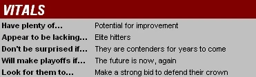 Analysis: The Phils had been a really good team over the six seasons prior to 2007, never dropping below 80 wins and finishing with 85 or more five times, but it wasn't ever quite enough to make the playoffs in a division that either the Braves or Mets had owned for 12 straight years. In 2007, though, the Phillies broke that streak with style, following through on Jimmy Rollins' "team to beat" assertion by saving their best for last (they were 48-33 in the final 3 months of the season) and erasing what was at one time an 8½-game New York lead in the division race. Given that heroic 2nd-half performance, you have to consider Philly the favorites in the East for 2008, right? Well... not exactly. Think about all of the things that had to go right down the stretch for them to win the division: First, they played over their heads in August & September -- they won 3 more games than their run differential would predict, which doesn't sound like much until you consider that their final margin over NY was a single game. Also, they were the beneficiaries of one of the most improbable early Christmas presents any baseball team ever received -- I'm talking, of course, about the Mets' unprecedented collapse. On September 13, the Mets had a 99.5% probability of winning the division; on that same day, the Phils had about a 12% chance of making the playoffs. Now, I'm not saying that Philly didn't earn their division crown by reversing those numbers over the last 3 weeks of the season, but I am saying that the Mets lost the 2007 NL East more than the Phillies won it. Meanwhile, looking ahead to 2008, the Mets and Braves have gotten significantly better since this time last year (adding Johan Santana and a full season of Mark Teixeira, respectively) while Philly has done little to improve a suspect pitching staff (other than adding inconsistent closer Brad Lidge and moving Brett Myers back to the rotation). So while it wouldn't exactly be inconceivable to see Philadelphia make another run at the East title or the wild card, the good money is on 2007 being the apex of their recent run, "team to beat" talk or not.