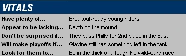 Analysis: Talk about overachievement. Under new manager Manny Acta a year ago, the hopelessly undermanned Nationals (seriously, Matt Chico was their top starter) still found a way to win 73 games and avoid the East basement for the first time since 2003. How did they do it? Well, for one thing, they made clever use of cheap pickups like Dmitri Young, Ryan Church, and Ron Belliard on offense, and they also fashioned together the 4th-best bullpen in the NL out of Chad Cordero and a bunch of afterthoughts (Jon Rauch, Saul Rivera, Jesus Colome, Ray King). All told, Acta's managerial acumen and a series of surprisingly shrewd moves by GM Jim Bowden added up to keep a Nationals team that was pretty awful on paper out of last place. Looking to 2008, there are a few new faces here (Lastings Milledge, Paul Lo Duca) to replace the departed (Church, Brian Schneider), but for the most part it's the same cast of characters that Washington trotted out a year ago... With one exception: righty starter John Patterson hopes to finally be healthy after 2 injury-riddled campaigns. You may not think Patterson's return is a big deal, but for Washington's rotation (which ranked 15th out of 16 teams in ERA a year ago) he could be a major shot in the arm, having posted a 3.13 ERA in 198⅓ innings during his last full season. Overall, the Nats still have plenty of room for improvement, but the offense should be better in '08 (thanks to Ryan Zimmerman's continued development, the Milledge pickup, and a full season of Wily Mo Pena), and the pitching could see big gains if Patterson returns to form and just one of their inconsistent starters steps up. Don't expect Washington to contend anytime soon, but don't expect them to be an easy 'W' for New York/Atlanta/Philadelphia anymore, either.