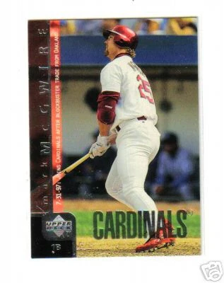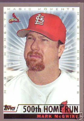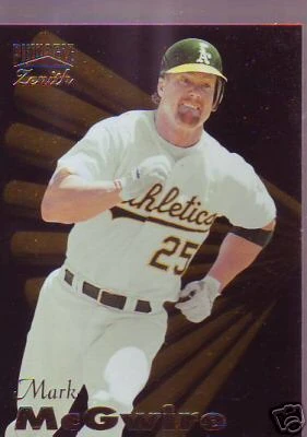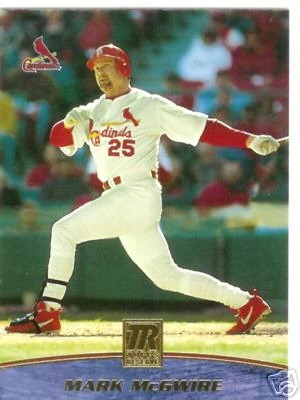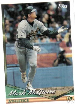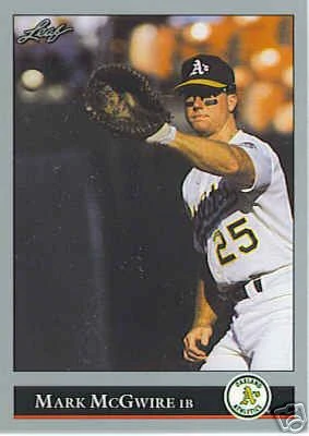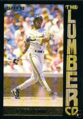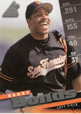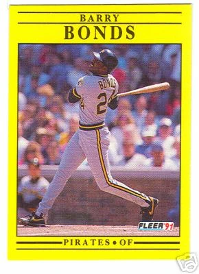 | We apologize for the tilted McGwire card—it was the only one we could find that demonstrated Mark's ever-expanding arms/legs/chest and, of course, hair. Barry, on the other hand, appears to have shrunk, giving an ounce of credence to the line that pre-1995, he was drug free. Or maybe he just had the flu on picture week.