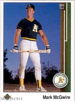 For those of you card enthusiasts out there, this is the year that Donruss had a lot of intentional mistakes in their print run to drive up prices error cards. Apparently, they got body doubles for these two guys, as both still appear on the small side. Yes, yes, McGwire is starting to add some bulk, but all Barry has added is his trademark bad attitude.